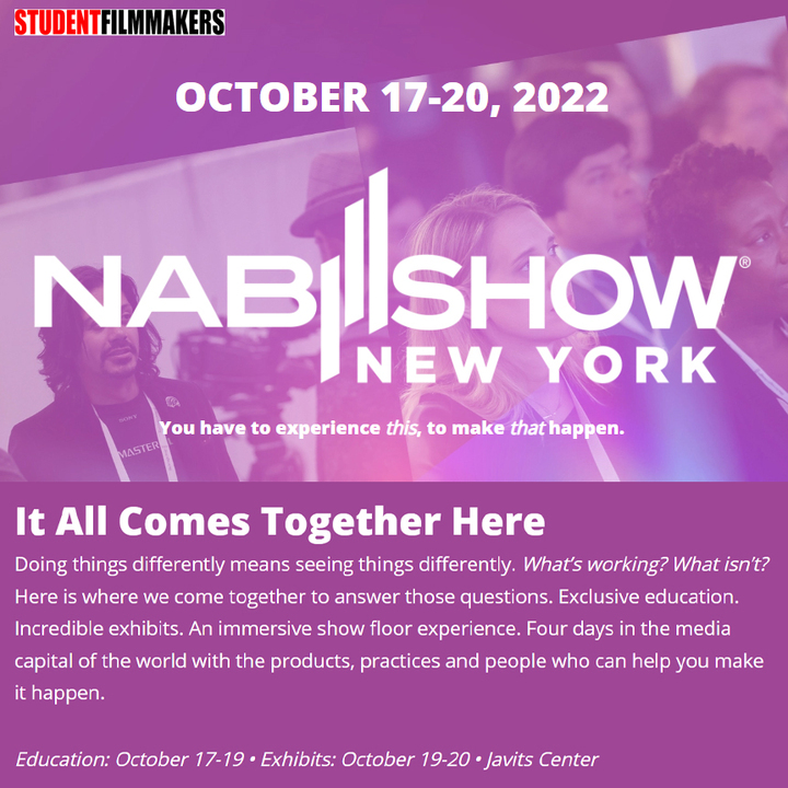 Use code MP03. Come and meet StudentFilmmakers Magazine at the 2022 NAB Show, New York, Booth # 1929