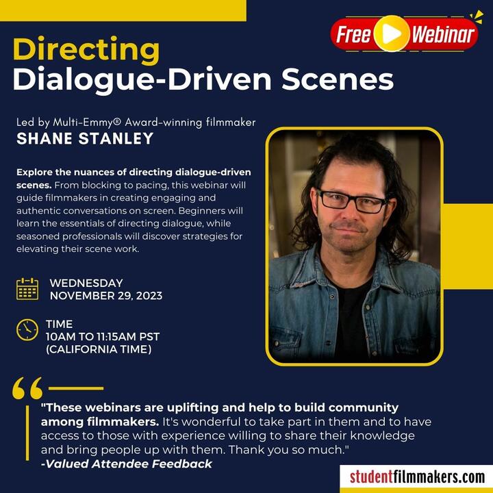 REGISTER FREE! Live Webinar, “Directing Dialogue-Driven Scenes” with Multi-Emmy® Award-Winning Filmmaker Shane Stanley