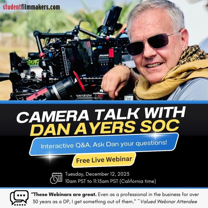 Join our live webinar, “Camera Talk with Dan Ayers SOC,” where participants will gain practical insights into the art of camera operation from Dan’s extensive experience as a camera operator on over 75 films and TV series. The session will be interactive with a Q&A format, providing an opportunity for attendees to bring their camera-related questions to Dan.